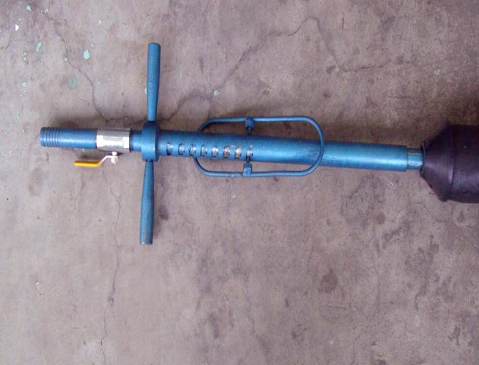 快速瓦斯封孔器主要由操作手柄、限位框、動力傳動桿、中心管、支撐墊、橡膠軟囊、密封部件、控制閥