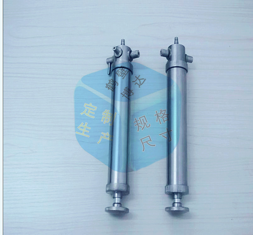 主要由三通閥門、進氣口、出氣口、膠塞閥、拉桿、活塞、氣筒及密封圈等部件組成。
